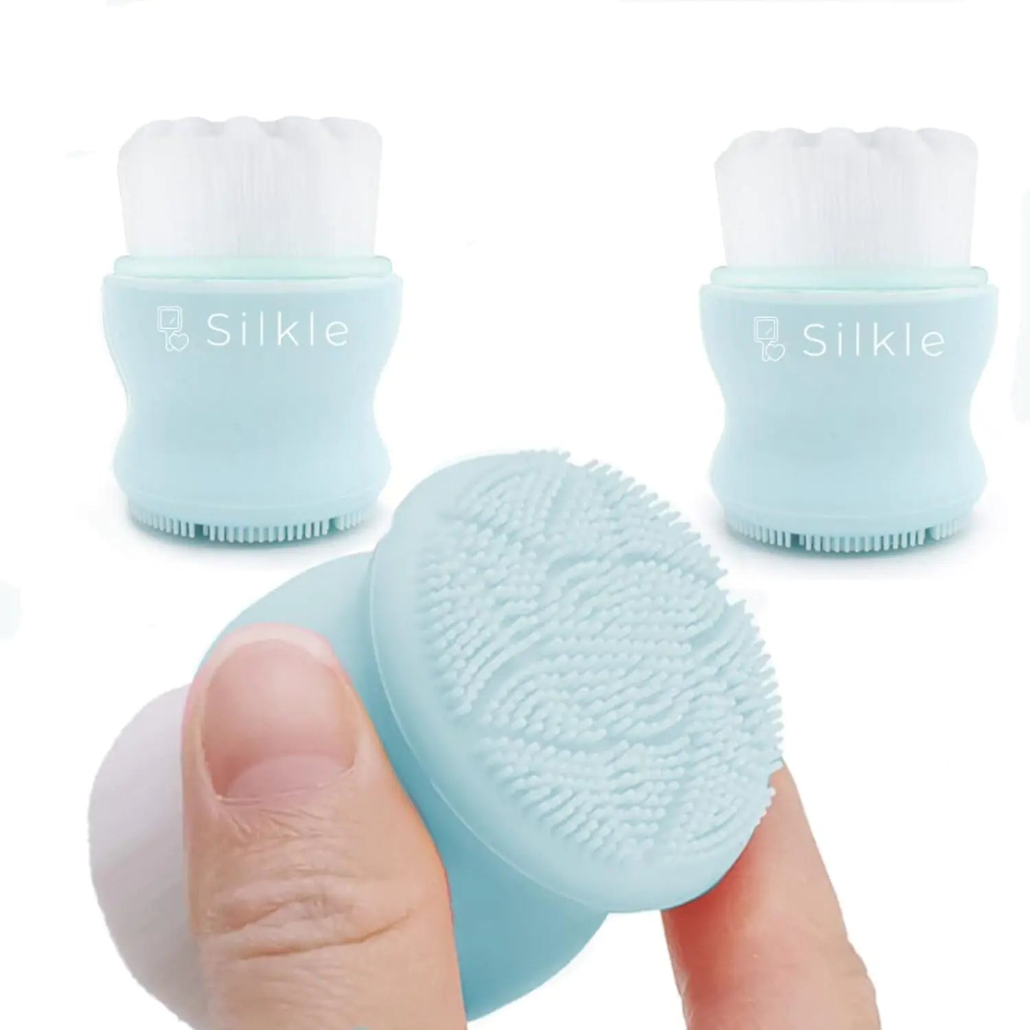 SILKLE Silicone Face Scrubber - Versatile Skincare Essential for Gentle Facial Cleansing Exfoliation and Scrub - Exfoliating Face Wash and Cleanser Brush for Your Skin - 2 Pack - Pink & Blue